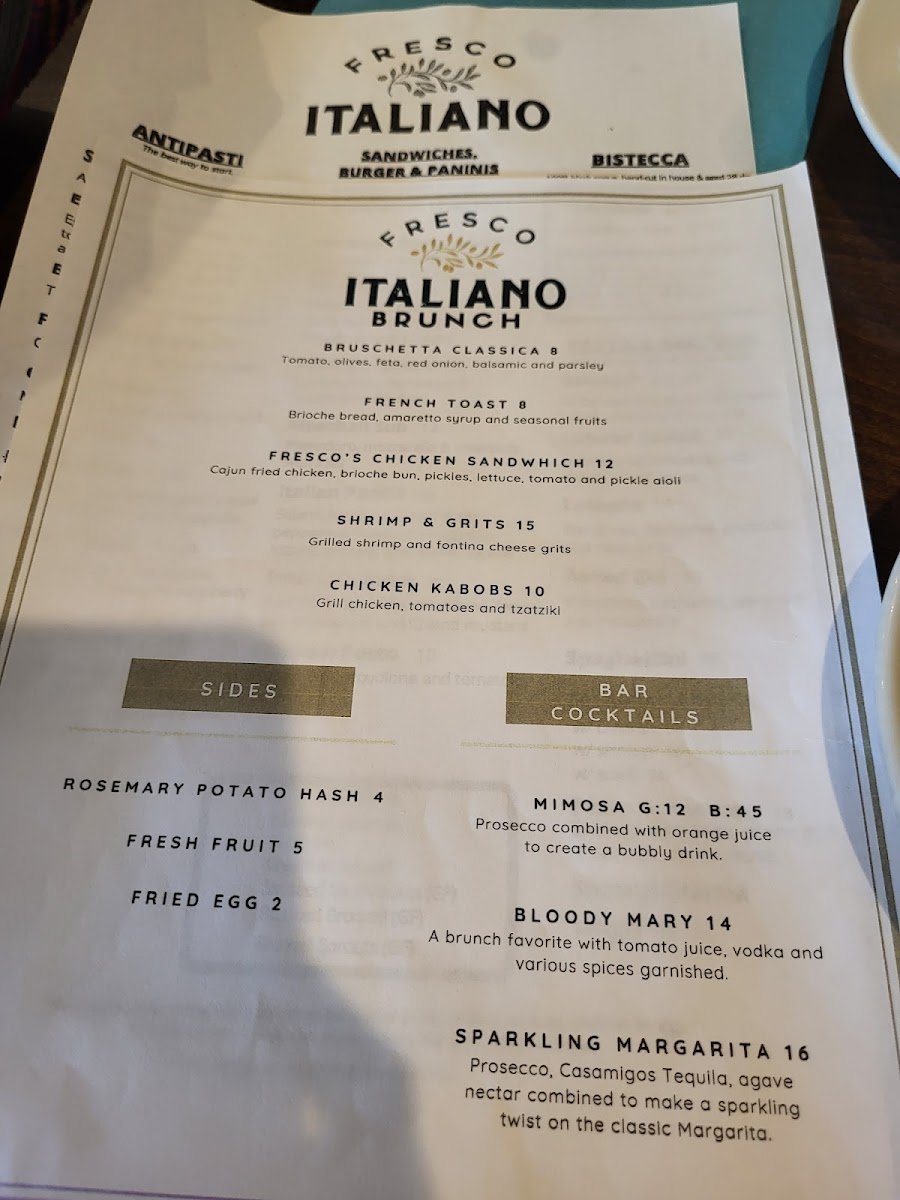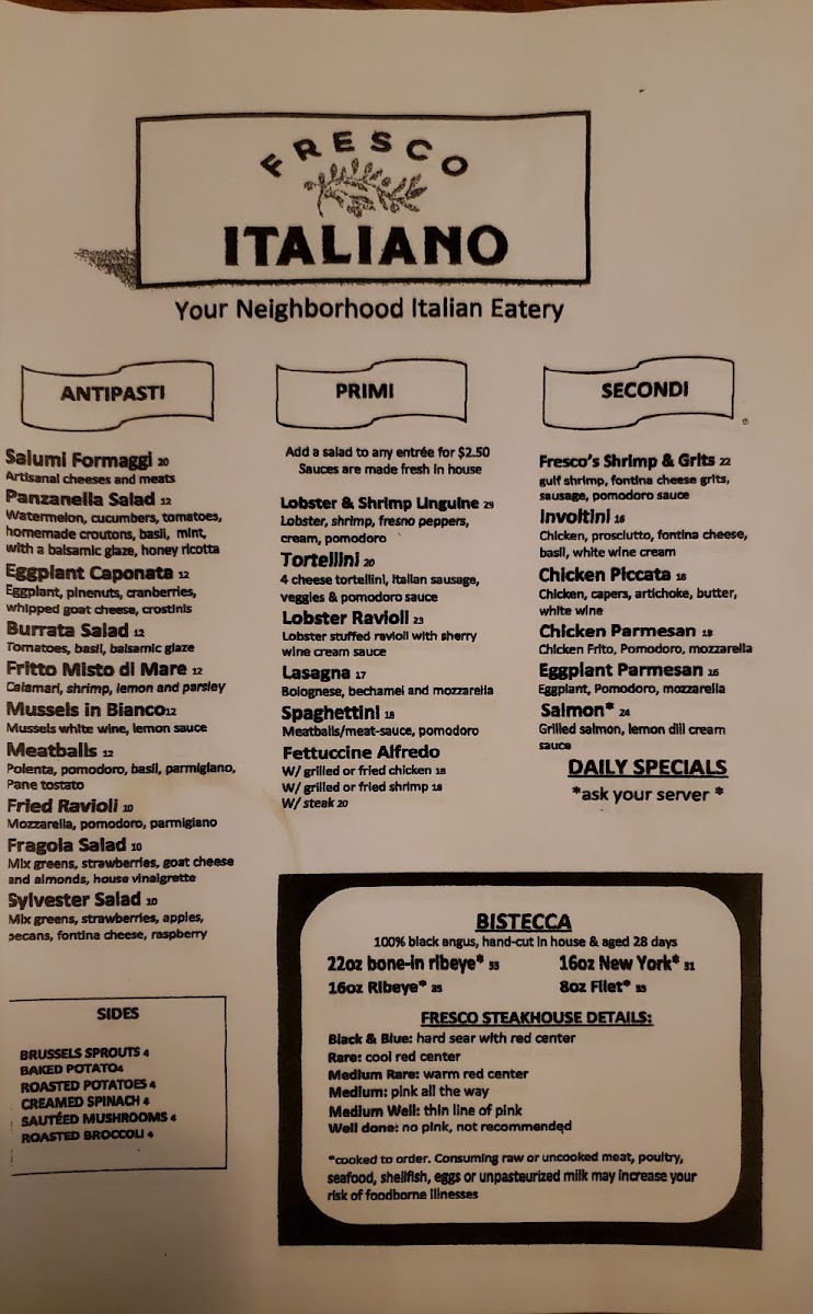 Fresco Italiano Menu